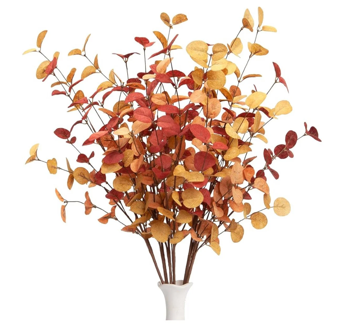 These faux eucalyptus stems capture fall in all its glory - rich golds, burnt oranges, and deep reds that add a splash of fall color to any space you place them. Their airy shape makes them perfect for layering into a vase, whether on their own or mixed with other seasonal florals. Theyβre low maintenance, endlessly reusable, and always adding warmth to any space.