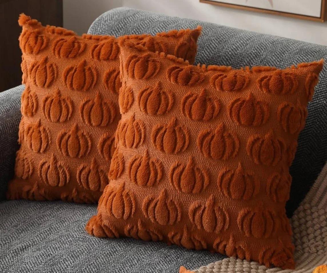Pillows are such an easy way to shift a room into a new season, and these pumpkin-patterned covers do it simply yet beautifully. The rich orange hue and soft textured design add warmth to your sofa or chair, instantly bringing in that pumpkin spice feeling. Theyβre cozy enough for curling up with a throw blanket, yet festive enough to make the whole space feel ready for autumn gatherings.