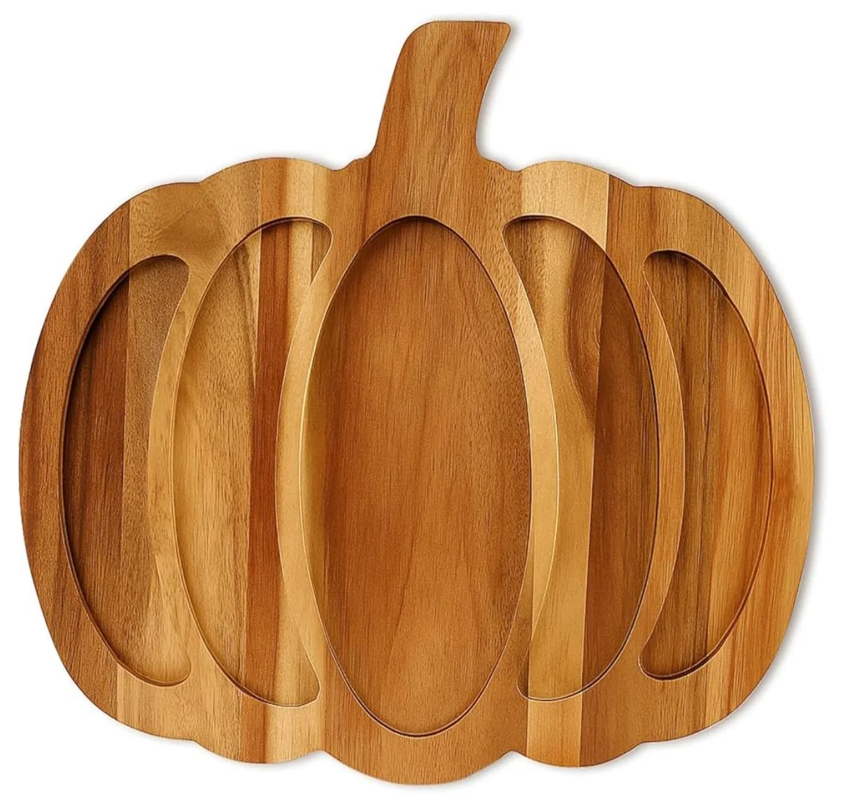 Made from acacia wood, this beautiful charcuterie board is decorative enough to sit on your kitchen countertop yet functional enough to use all season long. The warmth of the wood makes this a perfect fit for fall. This would make a fun way to lay out snacks for kids, create a charcuterie for Sunday football, or use it on Thanksgiving Day.