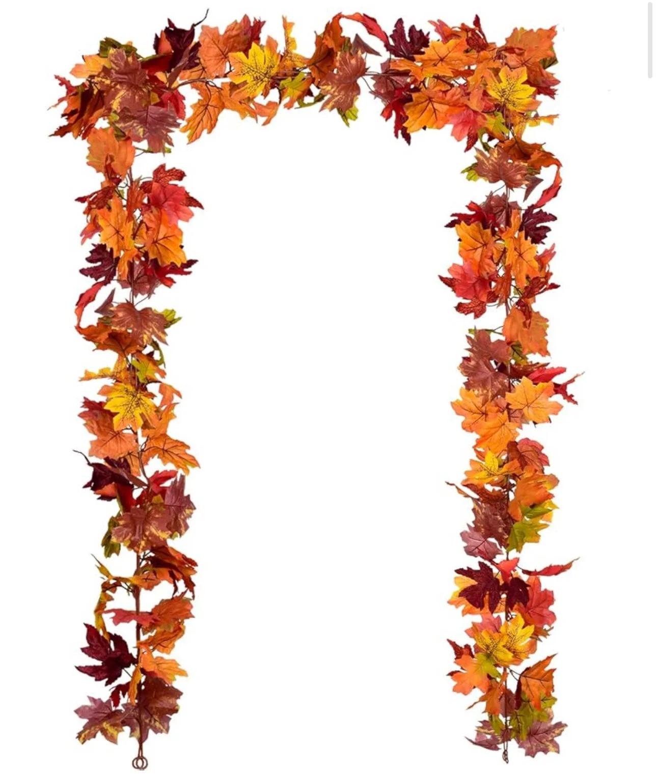 After the wreath on the door, garland is one of my favorite ways to carry fall inside. Draped along a mantel, stair rail, or bookshelf, it adds a sweep of autumn color that makes the whole room feel warm and inviting. The vibrant maple leaves remind me of the crunchy leaves scattered outdoors, only here they stay golden and glowing all season long.